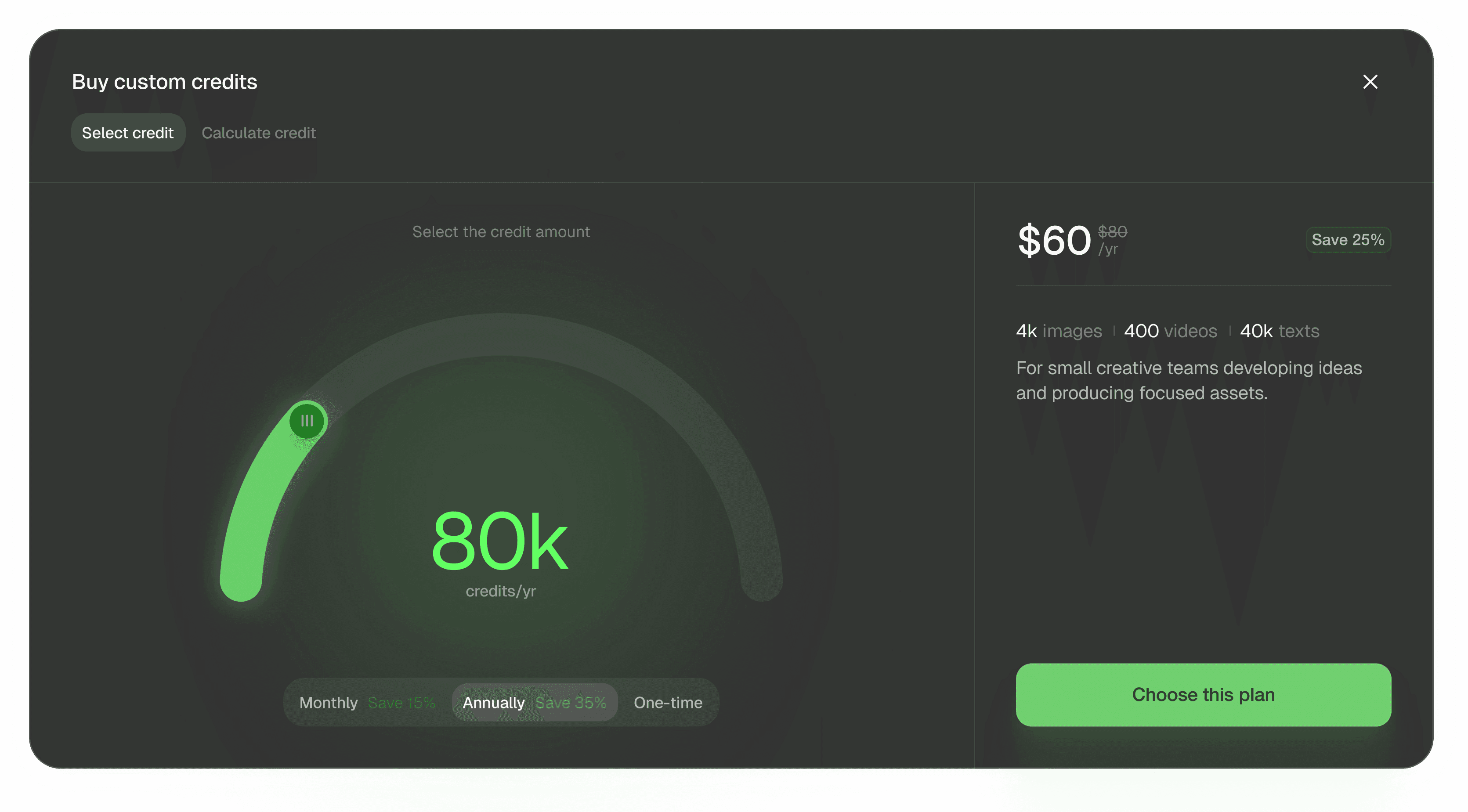 Credit purchase popup